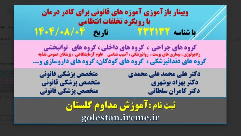 وبینار علمی آموزه های قانونی برای کادر درمان با رویکرد آزار جنسی و کودک آزاری